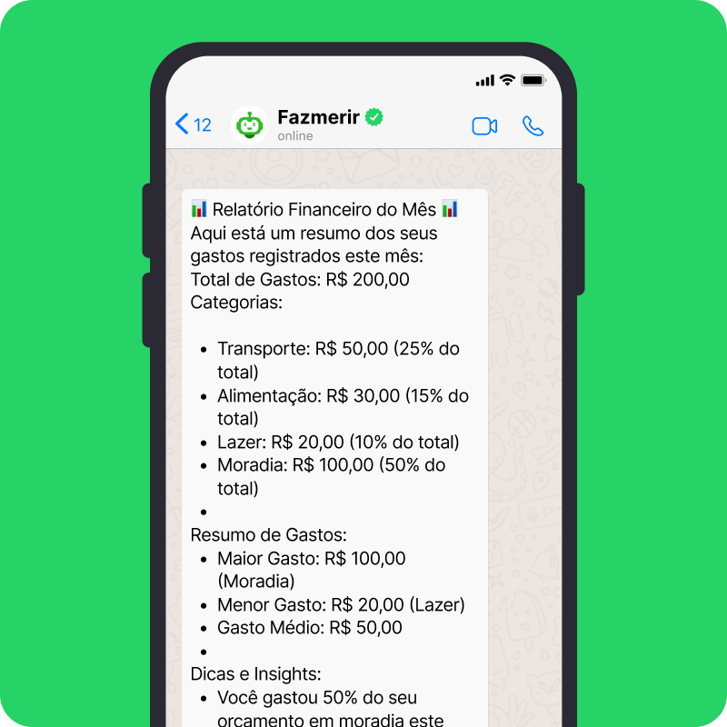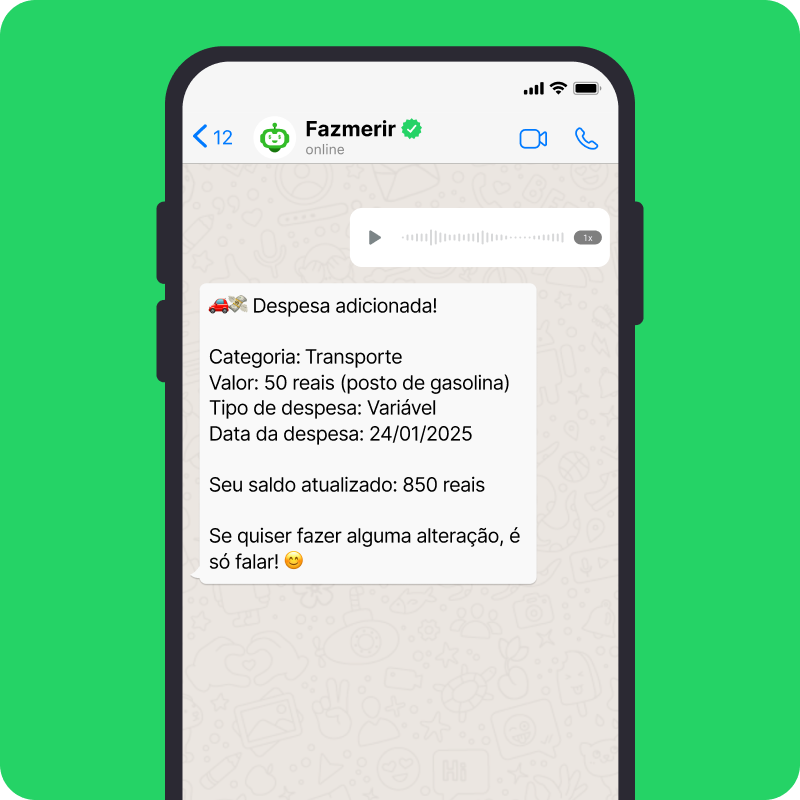 Simplifique a gestão das suas finanças com um assistente de IA que organiza, planeja e ajuda você a economizar no WhatsApp.