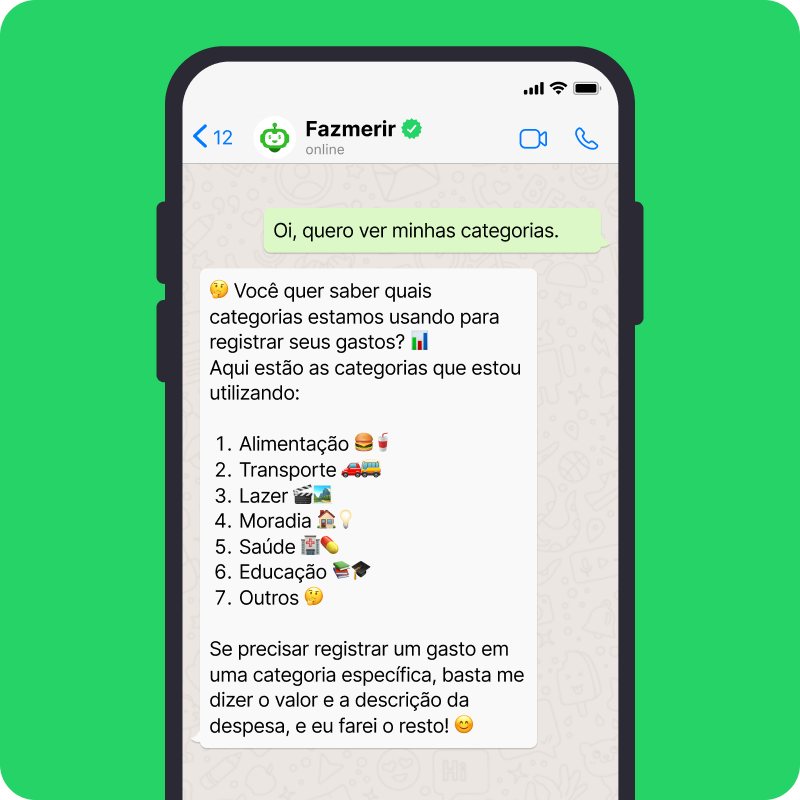 Nosso assistente utiliza tecnologia de ponta em inteligência artificial para analisar seus gastos e categorizar automaticamente suas despesas de maneira precisa. Além disso, você pode criar e sugerir categorias personalizadas, adaptando o sistema às suas necessidades financeiras.